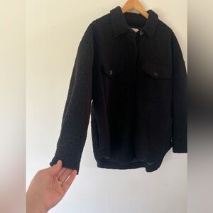 Good American Contour Faux Shearling Jacket Black Sherpa Shacket Size S/M