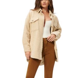 Good American Cream Sherpa Shacket Oversize Button Down Shirt Jacket Size 1/2 XL
