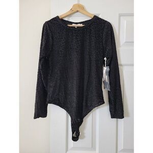 Good American Crew Neck Bodysuit Black Leopard 5 / US 2XL NWT