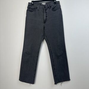 Good American Jeans 10/30 Ankle Black Good Curve Straight Leg Raw Hem Flattering