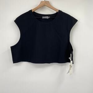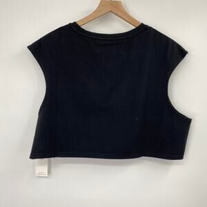 Good American Crop Strong Shoulder T Shirt Black Stretchy Knit Womens 14-16