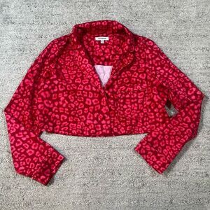 Good American Cropped Button Up Leopard Cheetah Print Pajama Shirt
