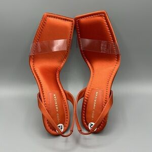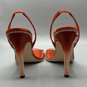 NEW Good American Crystal Crush Lucite Stiletto Satin Vinyl Strap Sandals Size 12