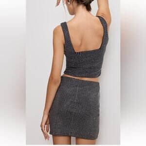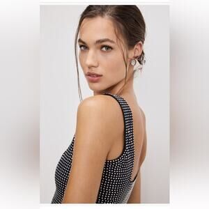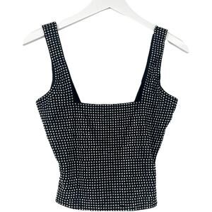 Good American Crystal Embellished Tank Top Square Neck Stretch Black Crystal Sm