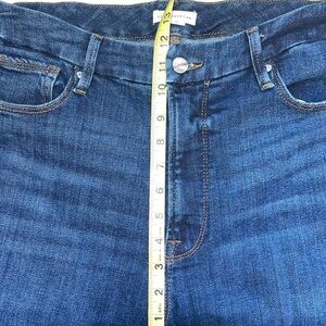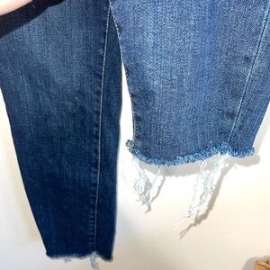 Good American dark wash frayed hem skinny jeans. In excellent condition! Super high rise. Button & zip front closure. Front & back pockets. Frayed ankles. Skinny fit. 26” inseam. Dark wash. Size 15, equivalent to size 31.