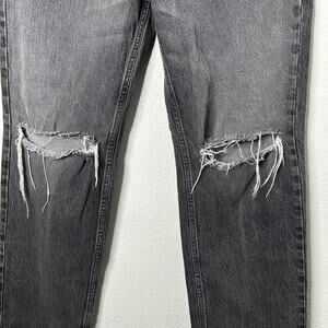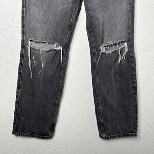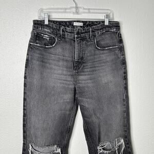 Good American Darted Distressed High Waist Black Straight Jeans 8/29