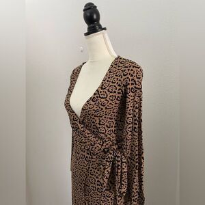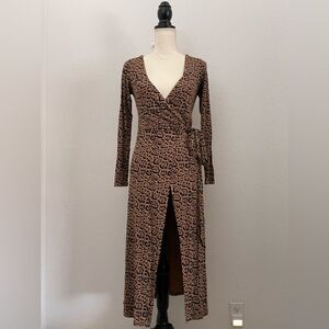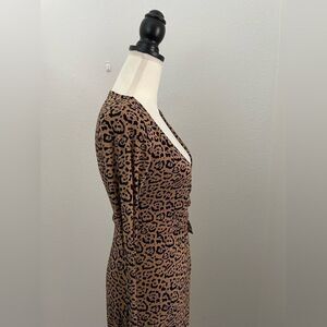 Good American DayNight Long Sleeve Wrap Midi Dress in Sepia Leopard Size XS