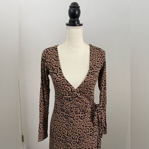 Turn heads in the DayNight Wrap Dress. This leopard print wrap dress is the most flattering silhouette ever.