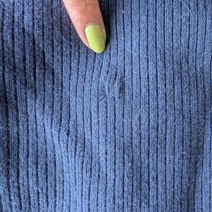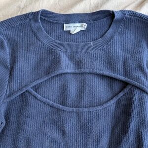 Chic deep blue ribbed top. Ideal for everyday style. loved it but ready to rotate for something new. sleeves are on the longer side. left a stock picture from the top in white so you can see the cute cutout