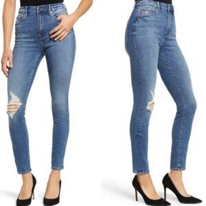 Good American Distressed Good Waist High Rise Skinny Ankle Jean Stretch Blue 28