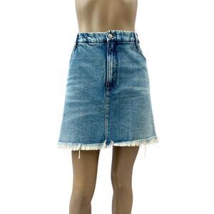 Good American Distressed Raw Hem Denim Mini Skirt Indigo Blue Womens XL, 20