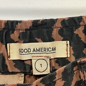 Good American Drapey Trouser Shorts Size 1 US Size S Small Brown Animal Print