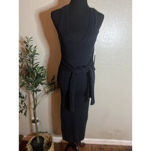 Good American Dress Black Belted BodyCon Ribbed Sleeveless Knit Size 3 Large NWT
