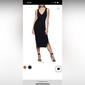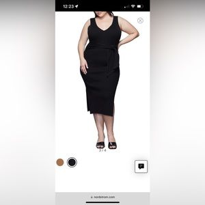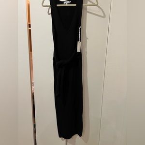 Good American Dress Midi Knit Tie Waist V-Neck Sleeveless Fitted Black L NWT