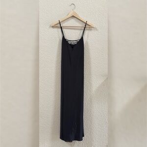 Good American Dress Satin Chemise Midi with Lace-Up Detail Chic Black Large