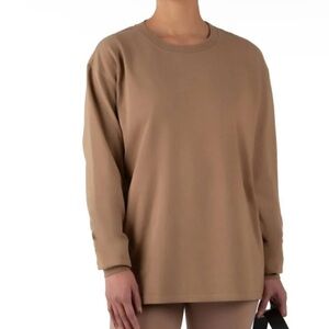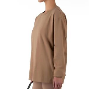 Good American Essential Long Sleeve Crewneck Top Putty Brown size 1/2 small S/M