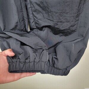 Good American Essential Nylon Track Joggers windbreaker Pants BLACK Women's Size 1 Small with pockets elastic drawstring waistband fully lined in excellent pre-owned condition! Like new! Please see photos for approximate measurements.