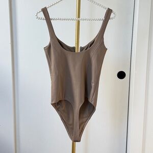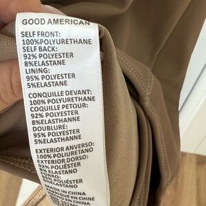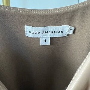 Ultra-flattering faux leather bodysuit from Good American in a sleek nude tone. Designed with a structured bust and bodycon fit, perfect for edgy layering or night-out styling.