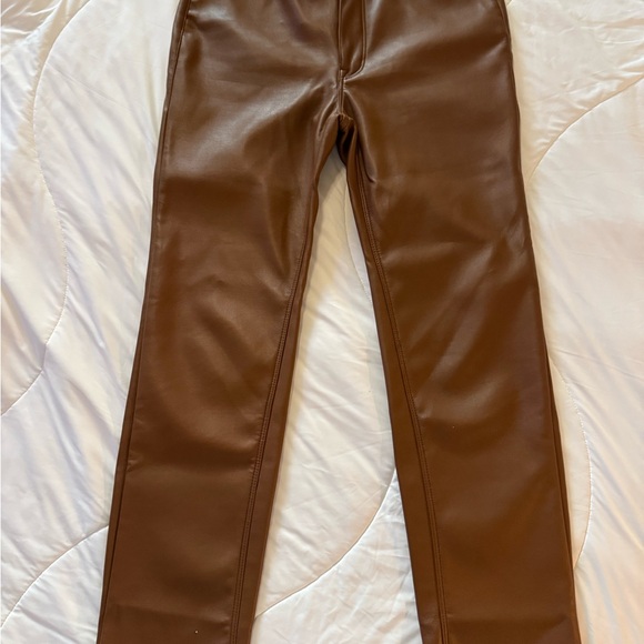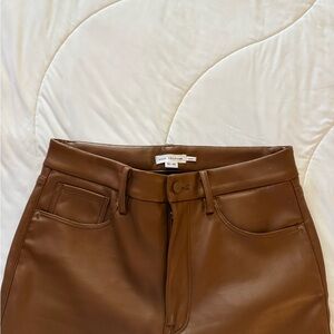 Good American Faux Leather Camel Straight Leg Pants