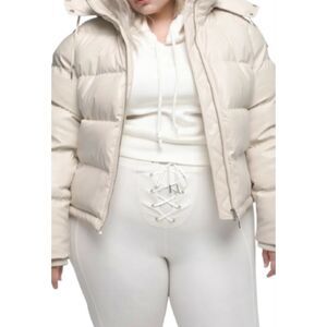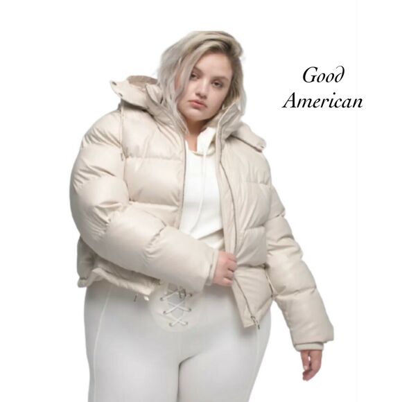 Good American Cream Faux Leather Puffer Coat NWT Size L/XL $249