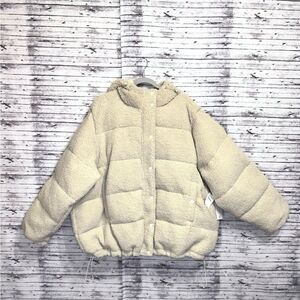 Good American Faux Shearling Cocoon Hooded Puffer Coat
