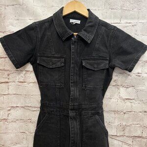 Good American Fit For Success Black Jean Denim Coveralls Jumpsuit Size 0