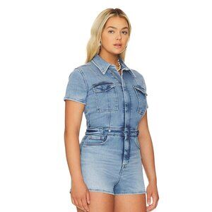 Good American Fit For Success Short Jumpsuit Romper in Blue Denim 274 / 8
