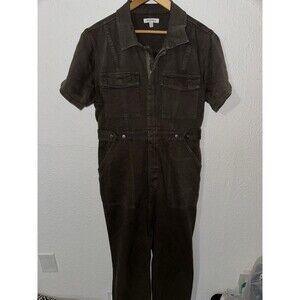 Good American Fit For Success Straight Leg Denim Jumpsuit Fatigue Green Large