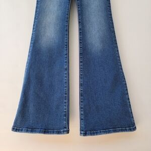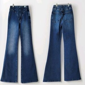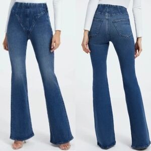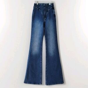 Good American Pintuck High Waist Flare Jeans Bohemian 70s Minimalist Retro Denim
