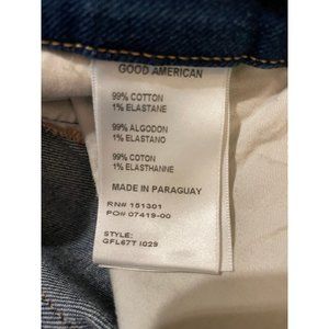 Good American Flare Leg Jeans in a size 16. Really good condition. High waisted. Bottom of legs has a slit super cute! Inseam is 32in.