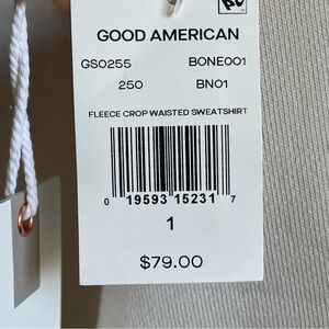 Good American Fleece Crop Waisted Sweatshirt Bone001 size 1 / Small NWT
