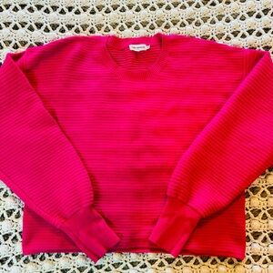 Good American Fuschia Ribbed Crewneck Oversize Sweater