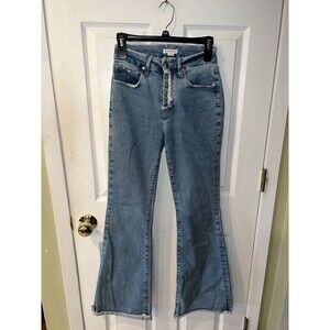 Good American GOOD FLARE Jeans Womens Sz 0/25 Raw Exposed Button Front Lightwash