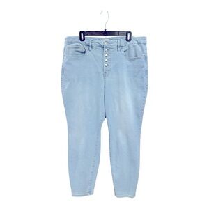 Elevate your style with these light blue high-waisted jeans. Perfect for any casual outing.Good American GOOD LEGS SKINNY CROPPED JEANS size 16 pre-owned good condition
