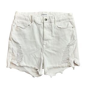 Good American Gash403 White Distressed Cut Off High Waist Rise Shorts Size 15/33