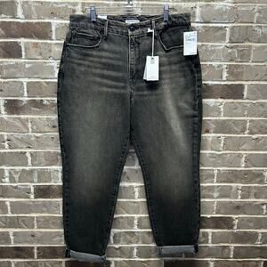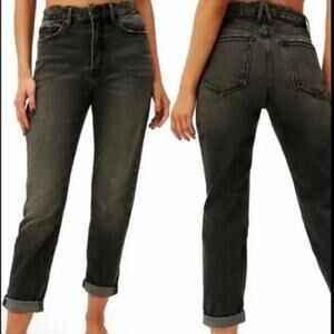 Good American Girlfriend High Rise Black Denim Jeans Distressed Back Pockets - Retail $159