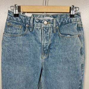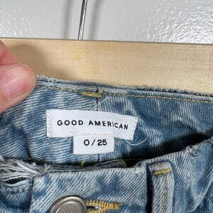 Good American Good 90s Icon High Rise Straight Jeans SIze 0/25 Distressed Blue