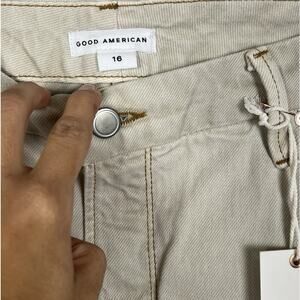 Good American Good 90s Icon High Rise Straight Leg Jeans Bone cream color 16