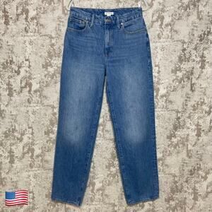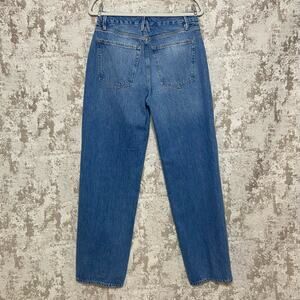 Fantastic jeans from Good American! Features high rise waist, zipper fly with button closure, loose, boyfriend leg silhouette, style named "Good 90's", full length leg inseam, and classic blue color called "Indigo054".