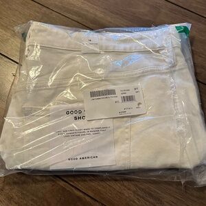 Good American Good '90s Ripped Raw Hem Denim Shorts White Plus Size 16