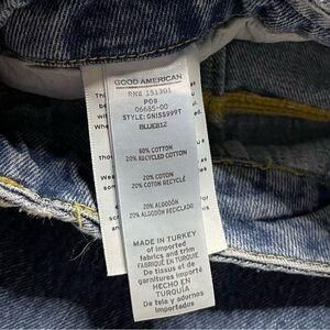 Good American's new '90s-inspired Denim is roomy, comfy, and still sexy. With a high waist and straight leg, this jean is oversized & form-fitting. Throw on your favorite kicks for that chill ‘90s look any day of the week. - High Rise - Straight fit - Single knee rip - Back darts - Medium blue wash