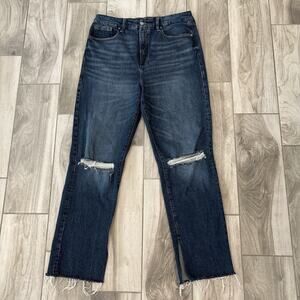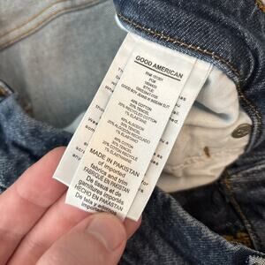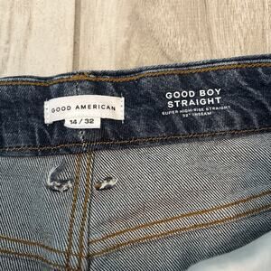 Good American Good Boy Straight Jeans Women’s Sz 32/32 Blue Denim Slit Hem