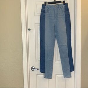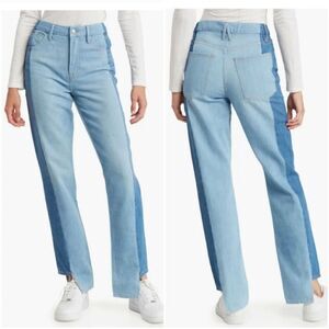 Good American Good Boy Two-Tone Step Hem High Waist Boyfriend Jeans Size 2/26