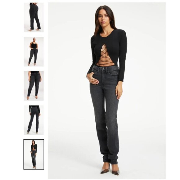 NWOT-Good American Good Classic Black High Rise Straight Leg Size