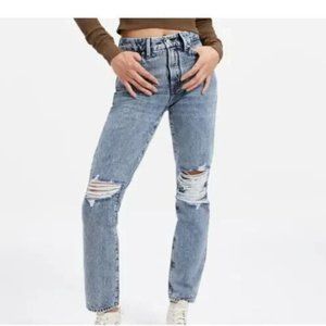 Good American Good Classic Denim Distressed Jeans Size 30 NWT Acid Wash