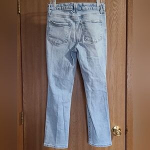 Keywords: Good American, slim leg, distressed, Khloe Kardashian, 90s, grunge, mom, y2k, casual, denim, staple piece, everyday jean, high-rise, flattering, chic, classic, soft, stretch, comfort, versatile, travel, date night, western, rodeo