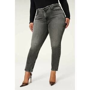 Good American Good Classic Low Waist Fray Black Gray Ankle Jeans womens 20 new
