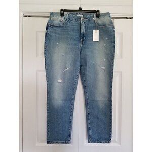 Good American Good Classic Skinnyish Fit Distress Indigo Hi-Rise Jeans Sz 14/32
