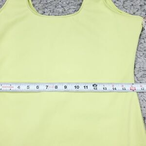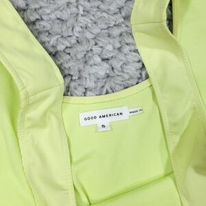 Good American Good Compression Scuba Knit stretch mini dress in green "Key Lime" color. New with tags, but has a couple faint spills on the chest and front bottom hem as shown, and a small pull on the bottom hem as shown. Tagged a Good American size 5 equal to women's size 2XL, please see included size chart for details. Real measurements shown in photos with dress laid flat: