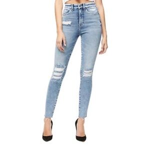 Good American Good Curve High Rise Raw Hem Distressed Skinny Jeans Size 2/26